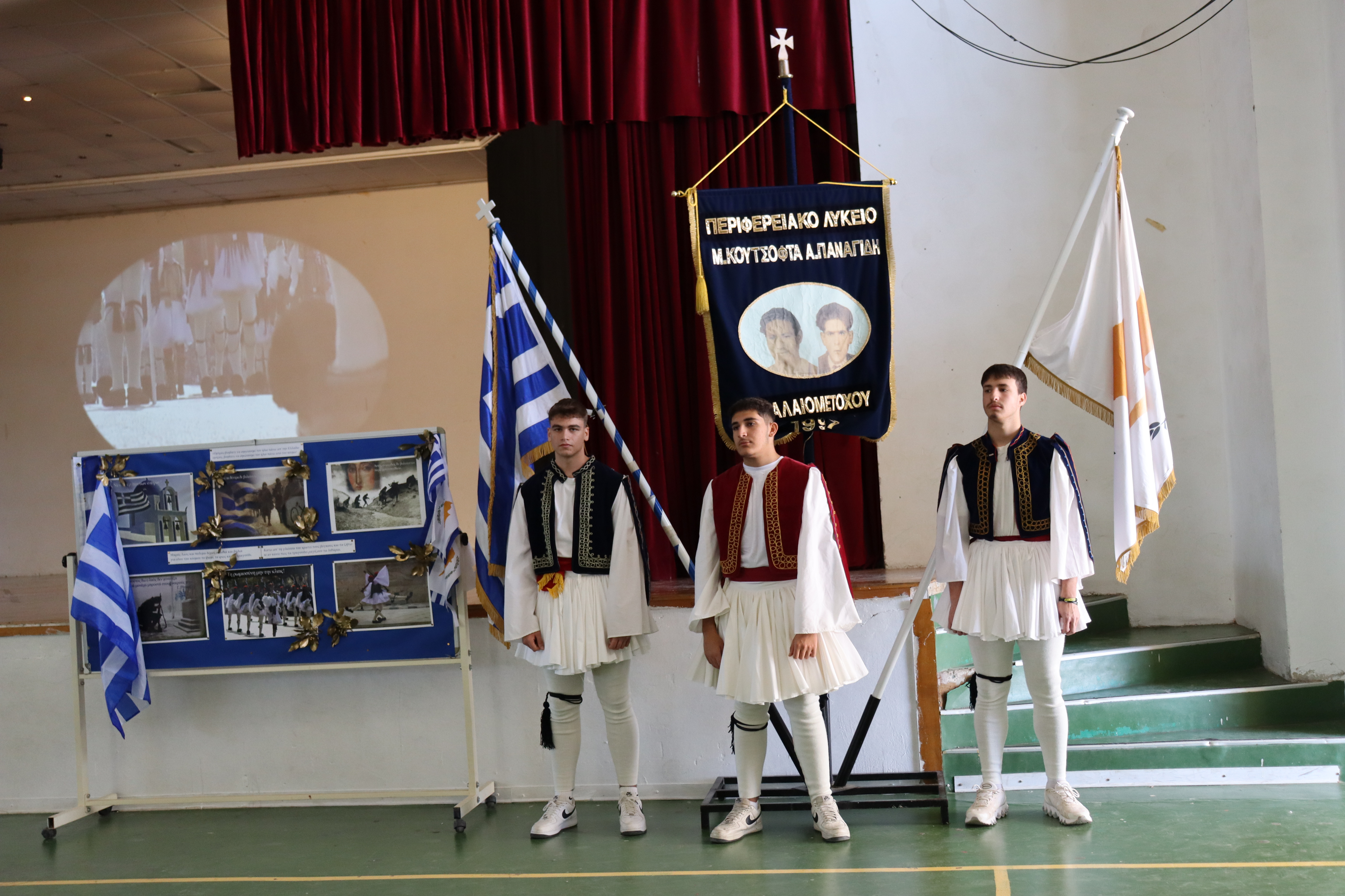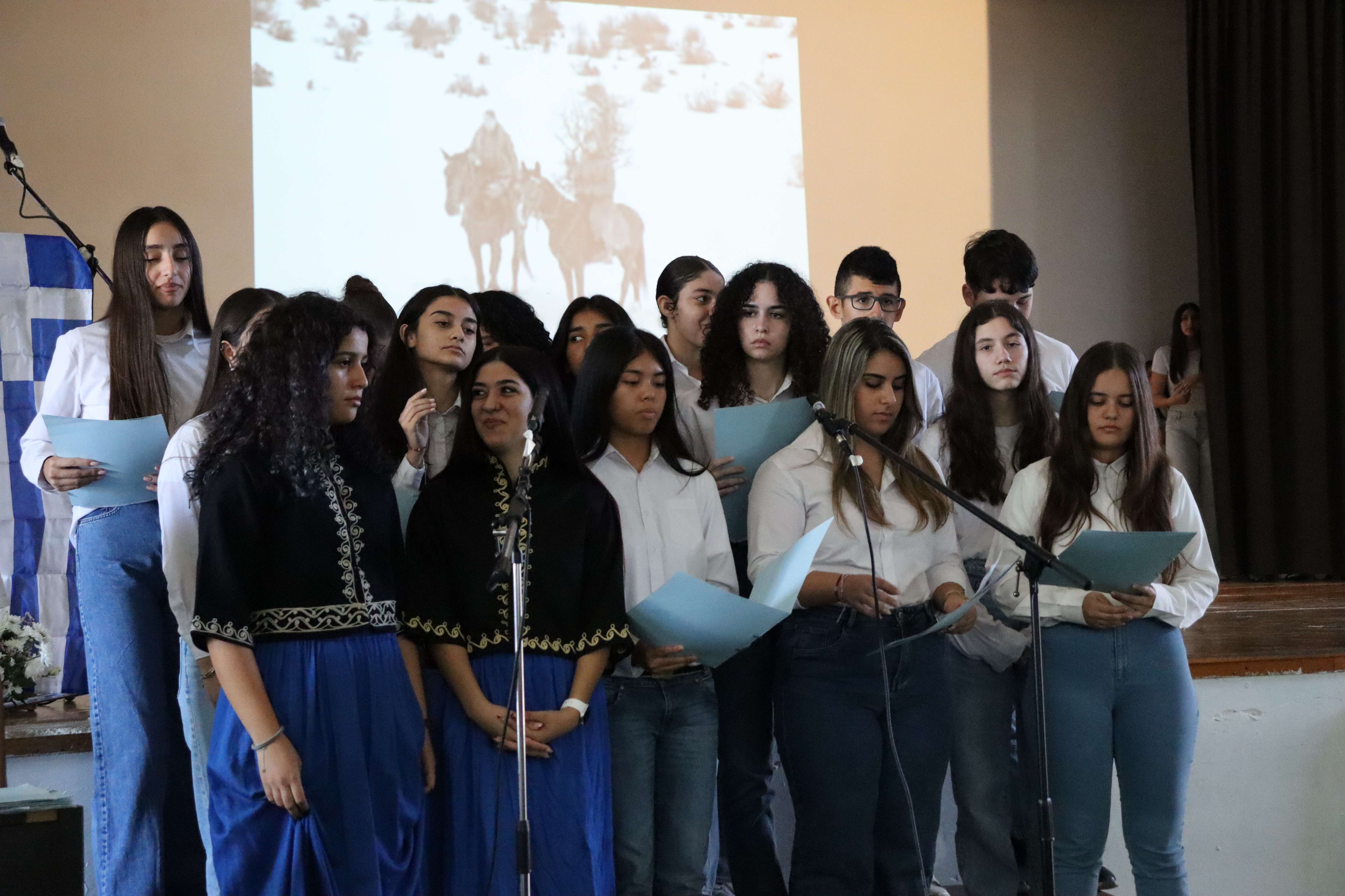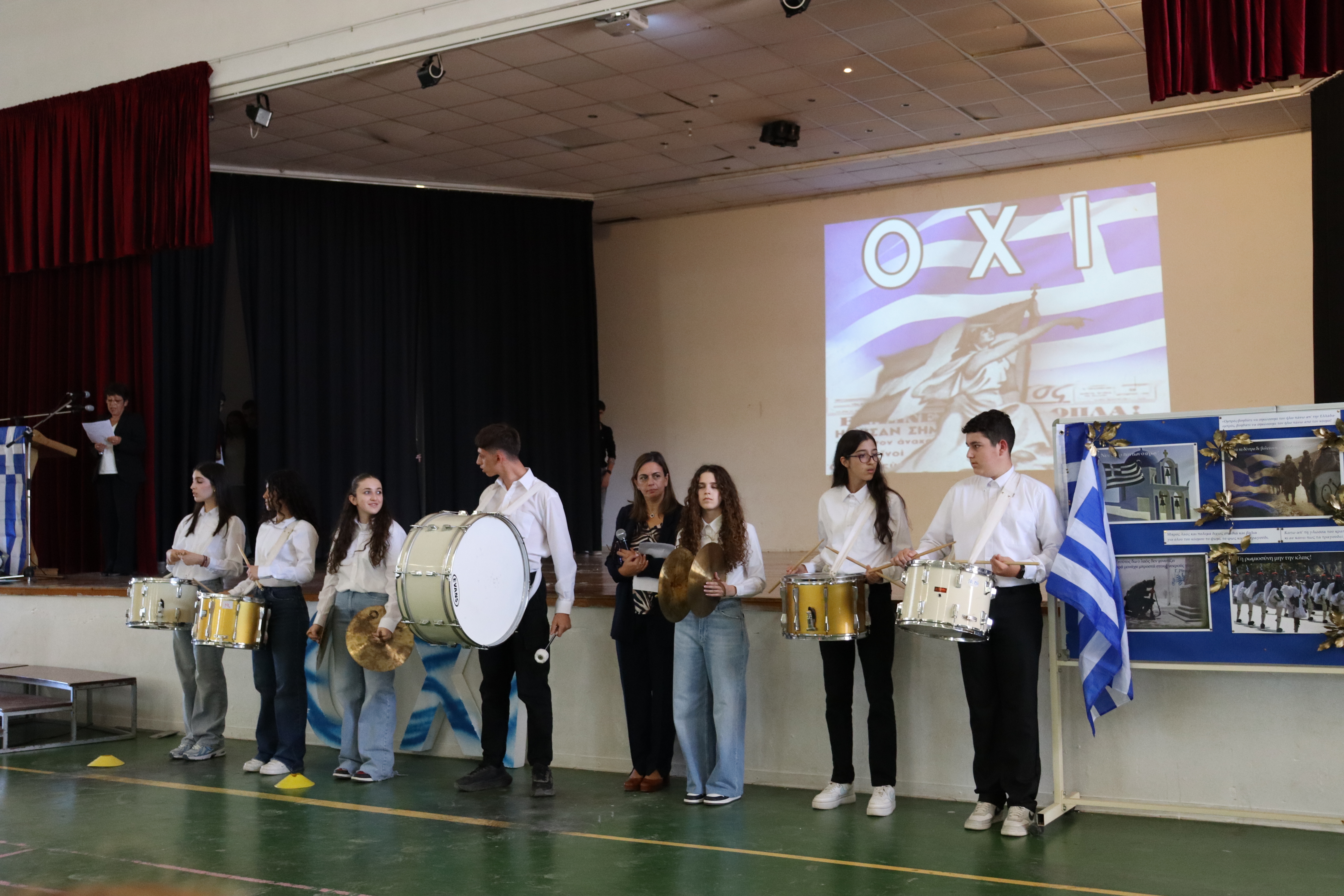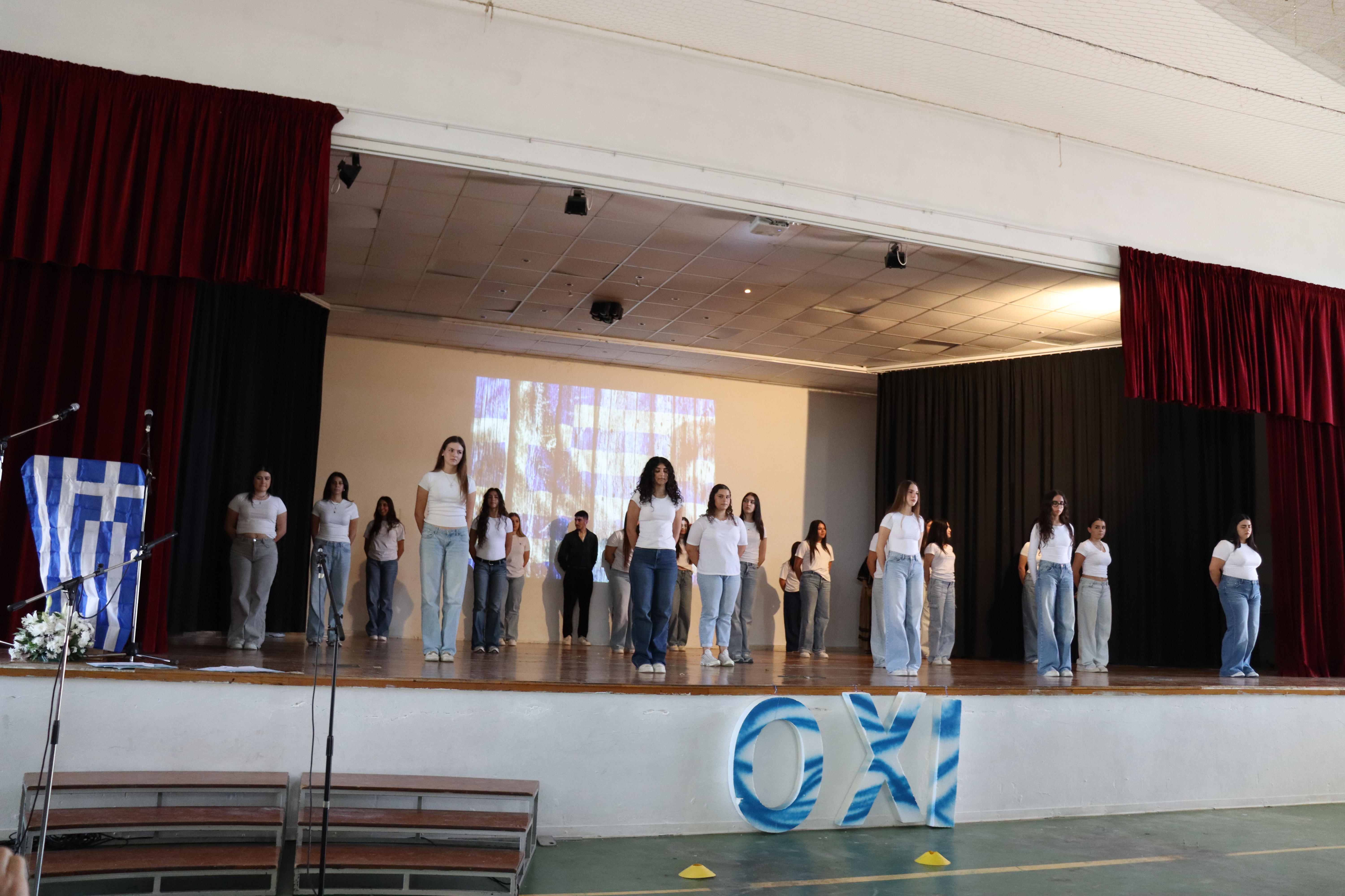 Οι μαθητές και οι μαθήτριες τίμησαν την ιστορική αυτή ημέρα μέσα από τραγούδια, ποιήματα και χορούς, μεταφέροντας το μήνυμα του ηρωικού «Όχι» και της ελευθερίας.