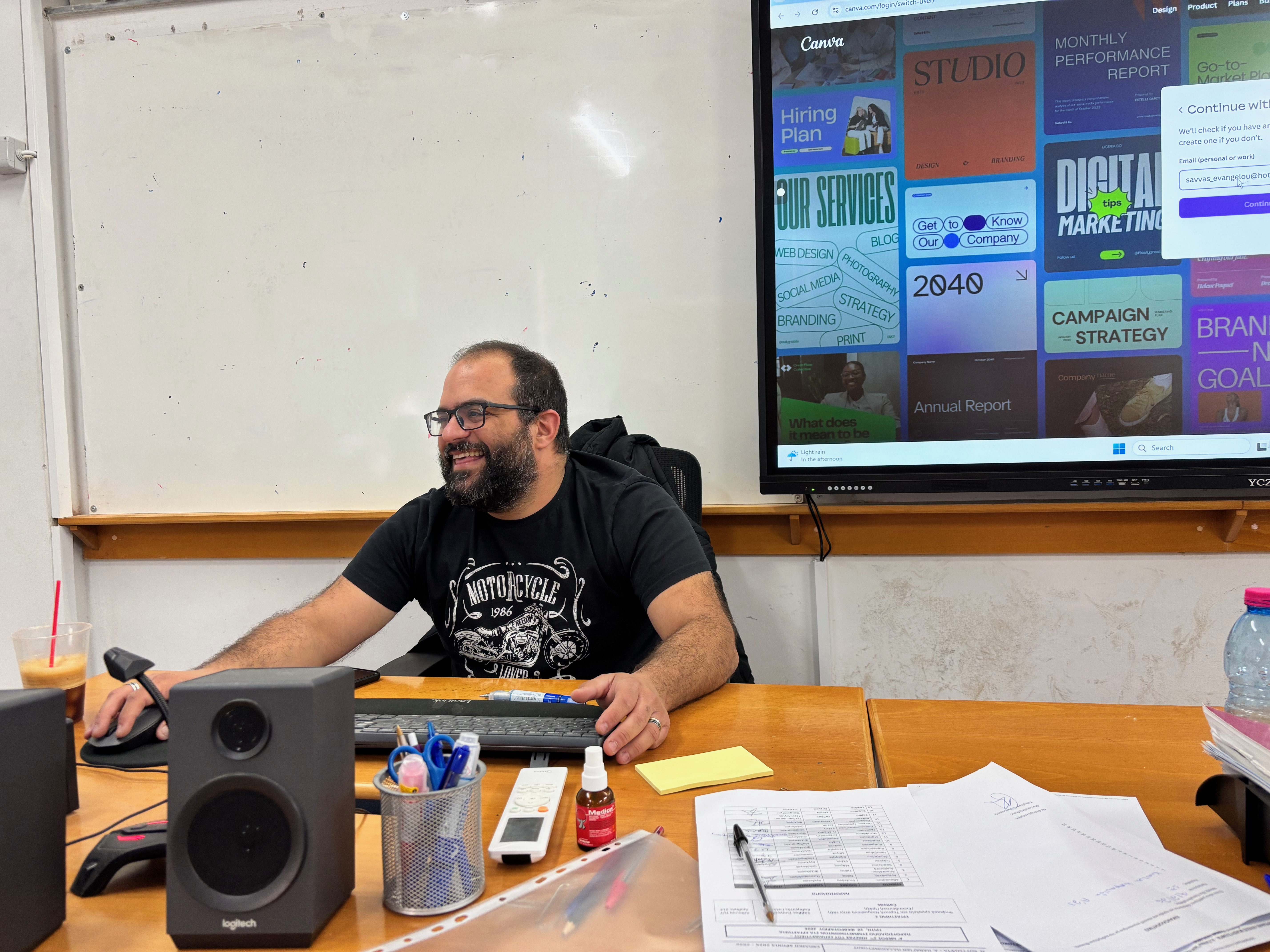Ακολούθως, και αφού απολαύσαμε στο διάλειμμα τα καθιερωμένα «Τερψιλαρύγγια Εδέσματα», συνεχίσαμε με διαδικτυακή επιμόρφωση σχετικά με τη χρήση των διαδραστικών οθονών.