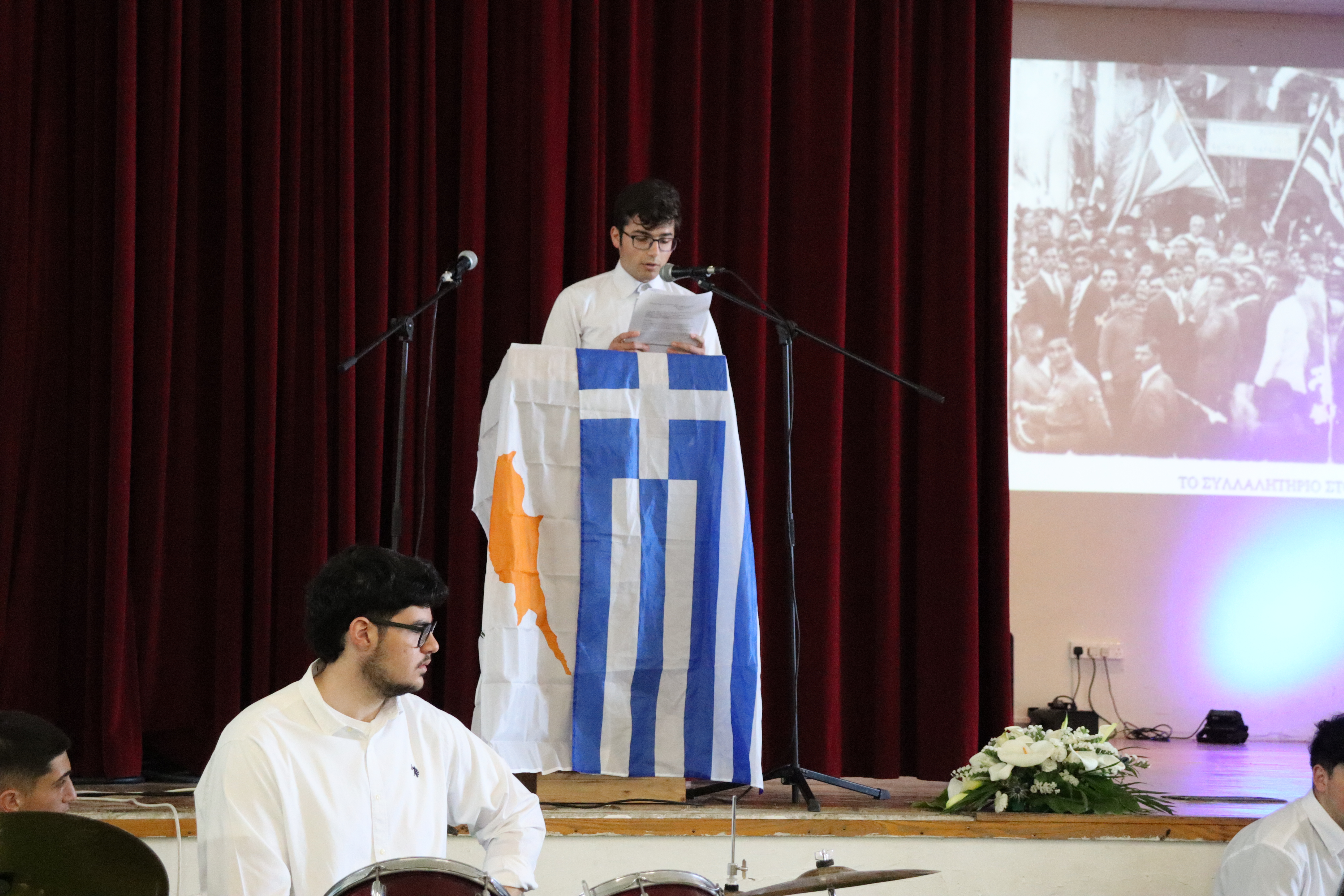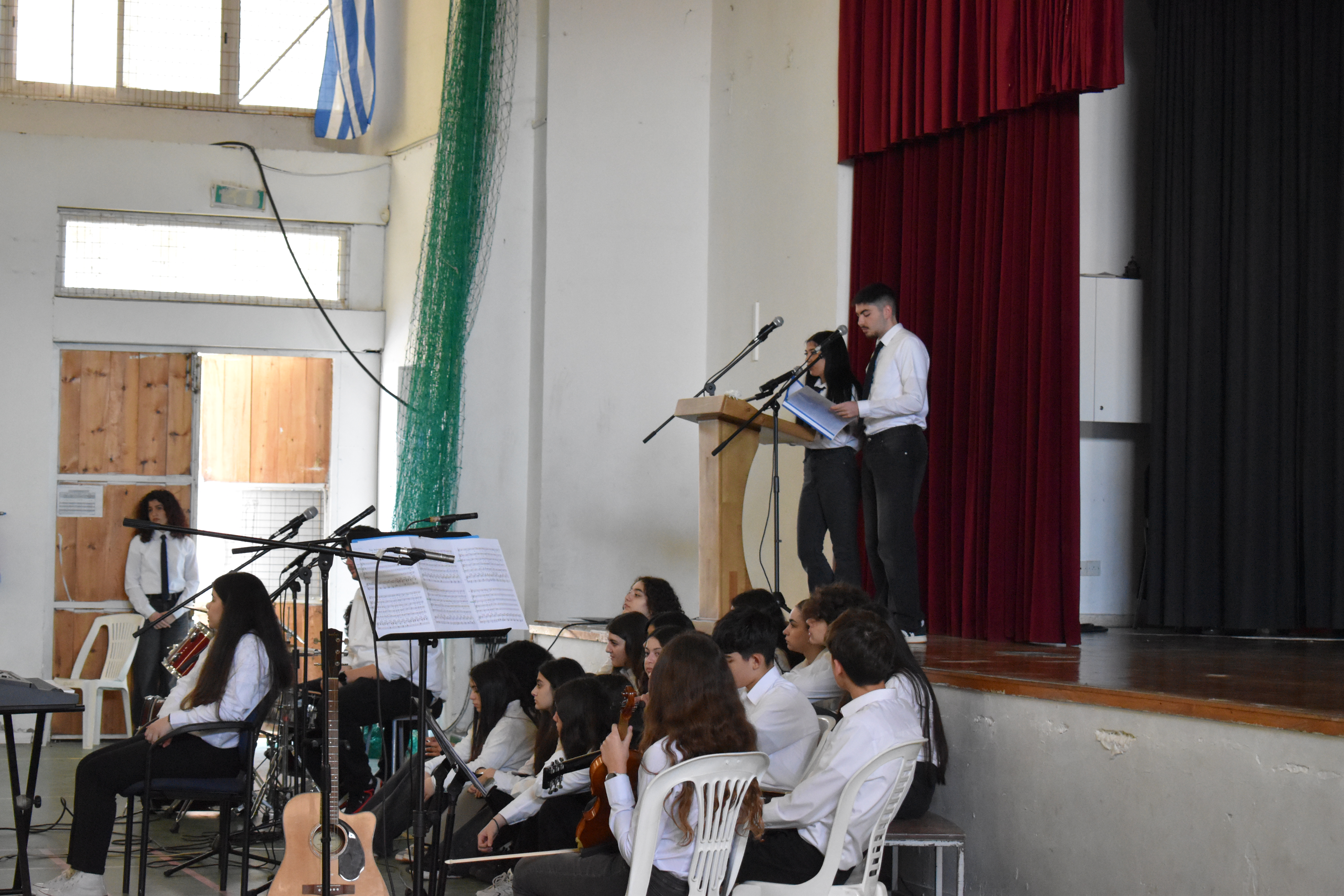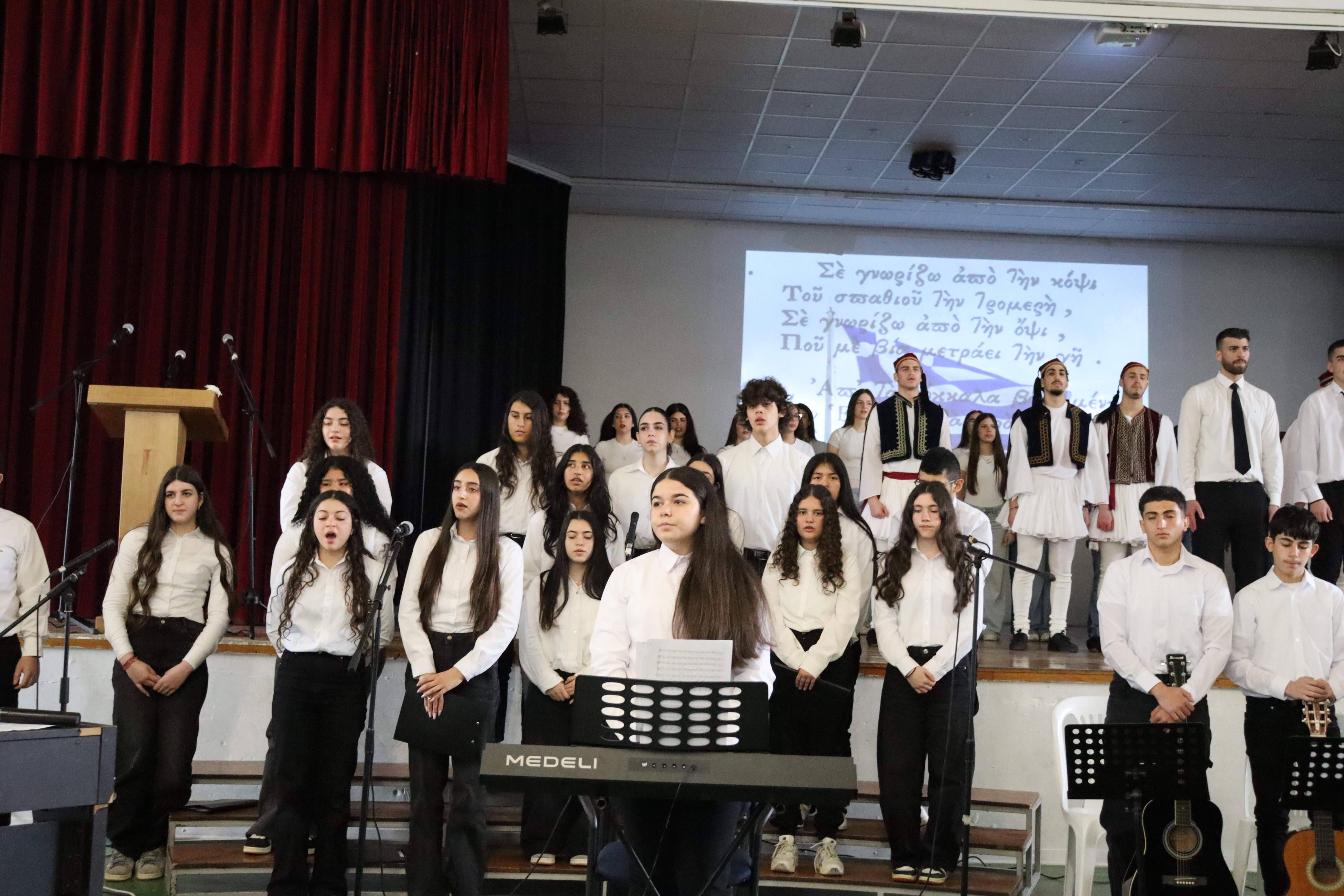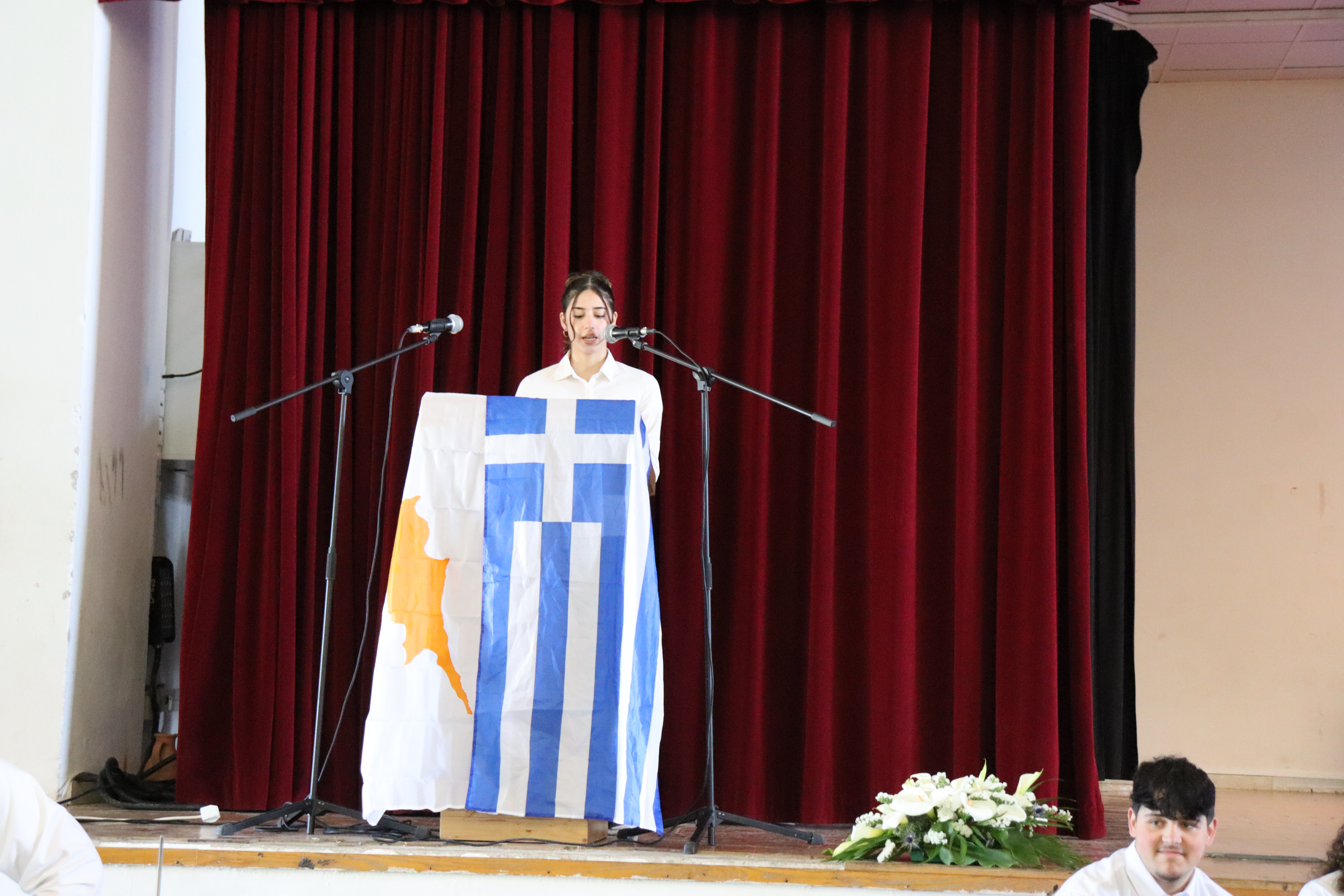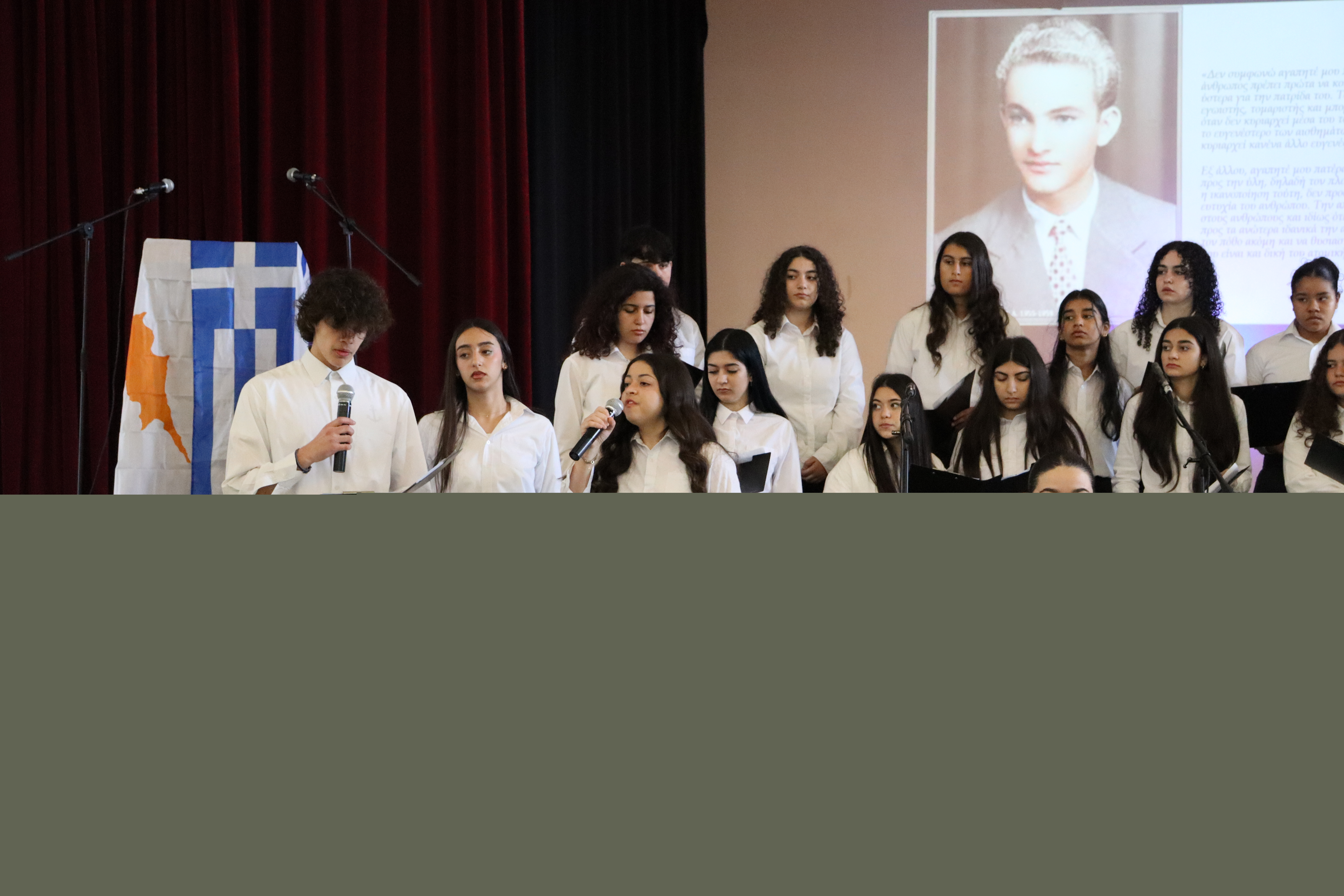 Σήμερα, Τρίτη 31 Μαρτίου, το σχολείο μας τίμησε τους ήρωες του αγώνα 1955–1959 με μια επετειακή εκδήλωση που περιλάμβανε τραγούδια, χορευτικά και θεατρικά δρώμενα, αποδίδοντας φόρο τιμής στις θυσίες των αγωνιστών.