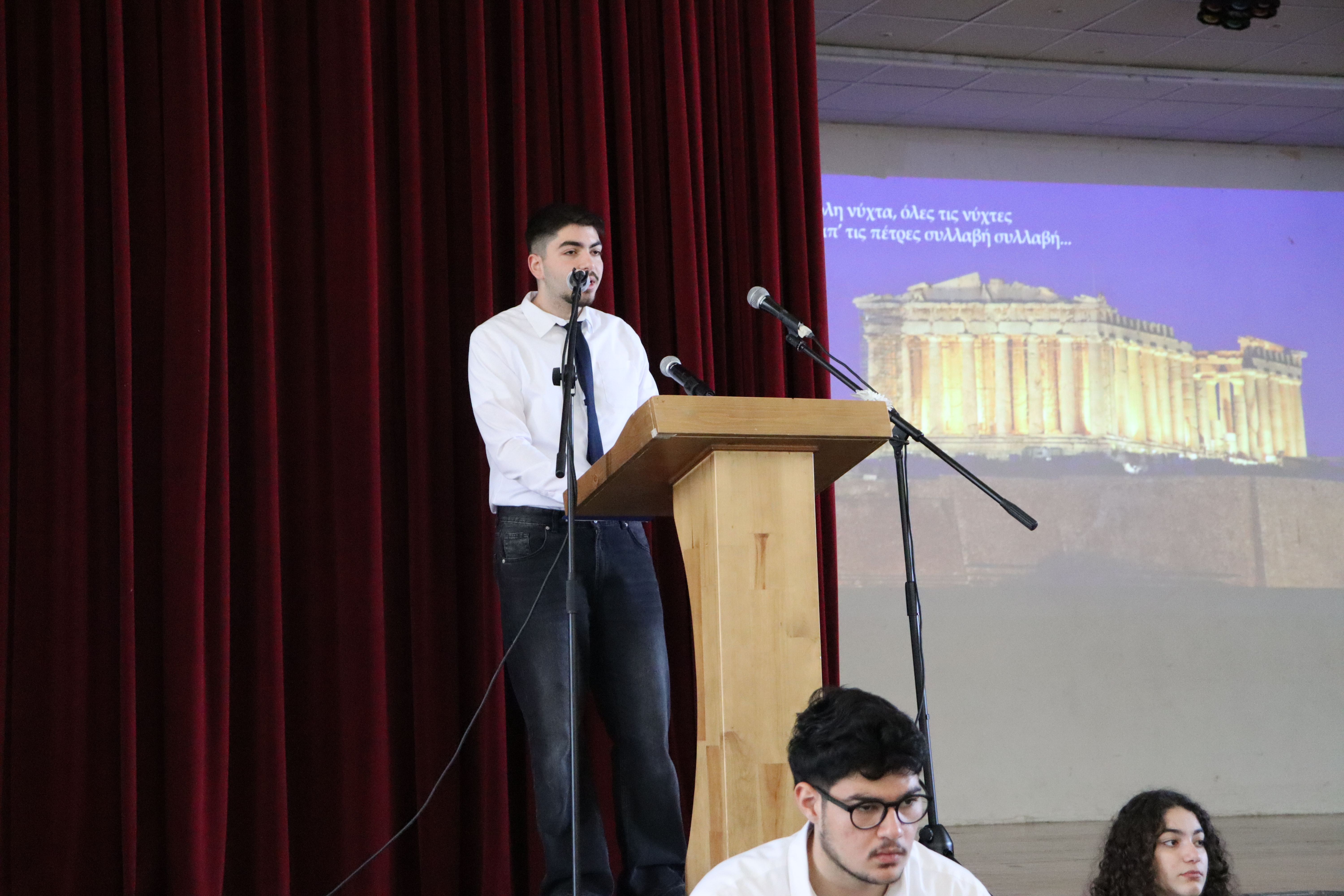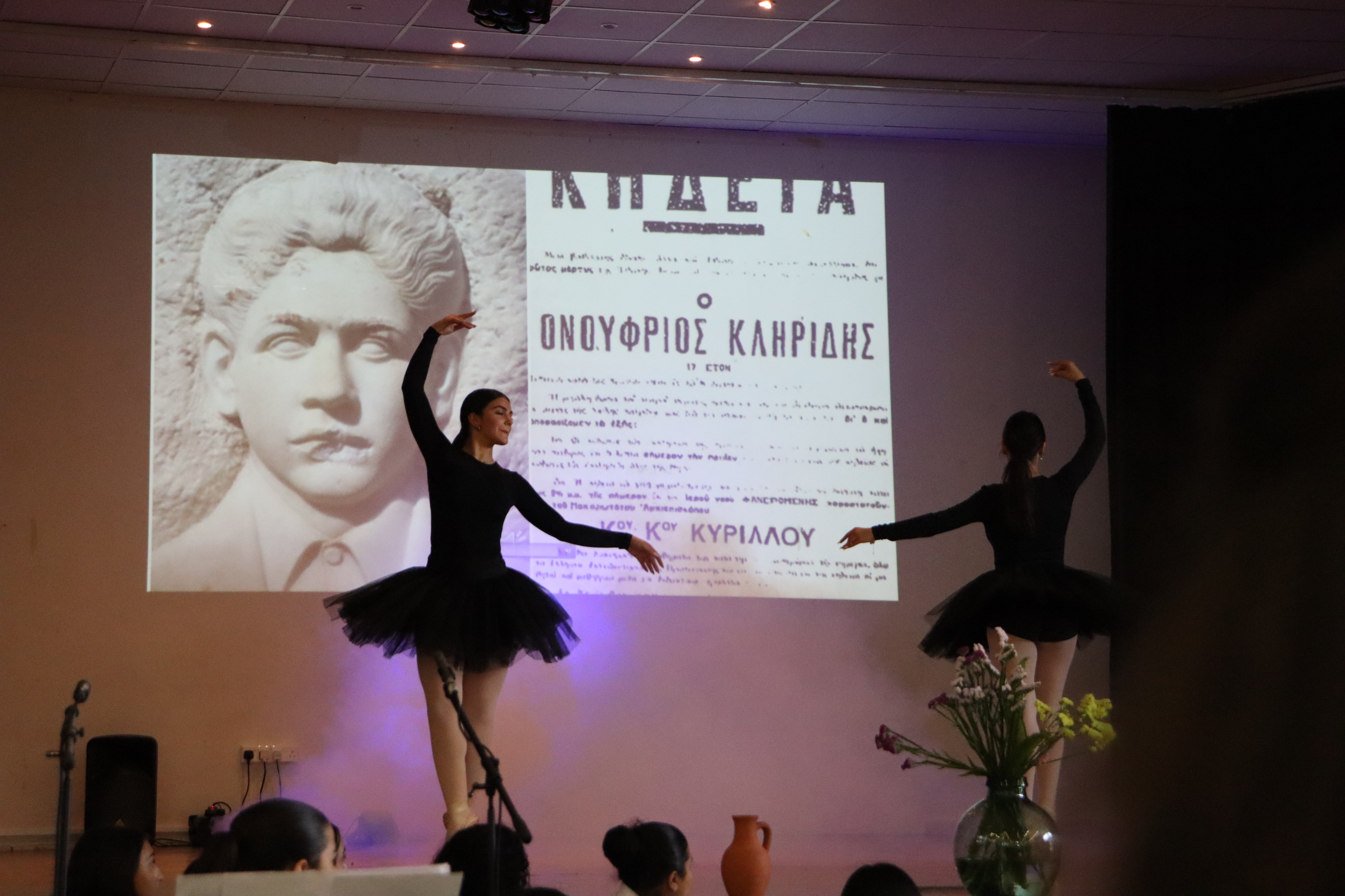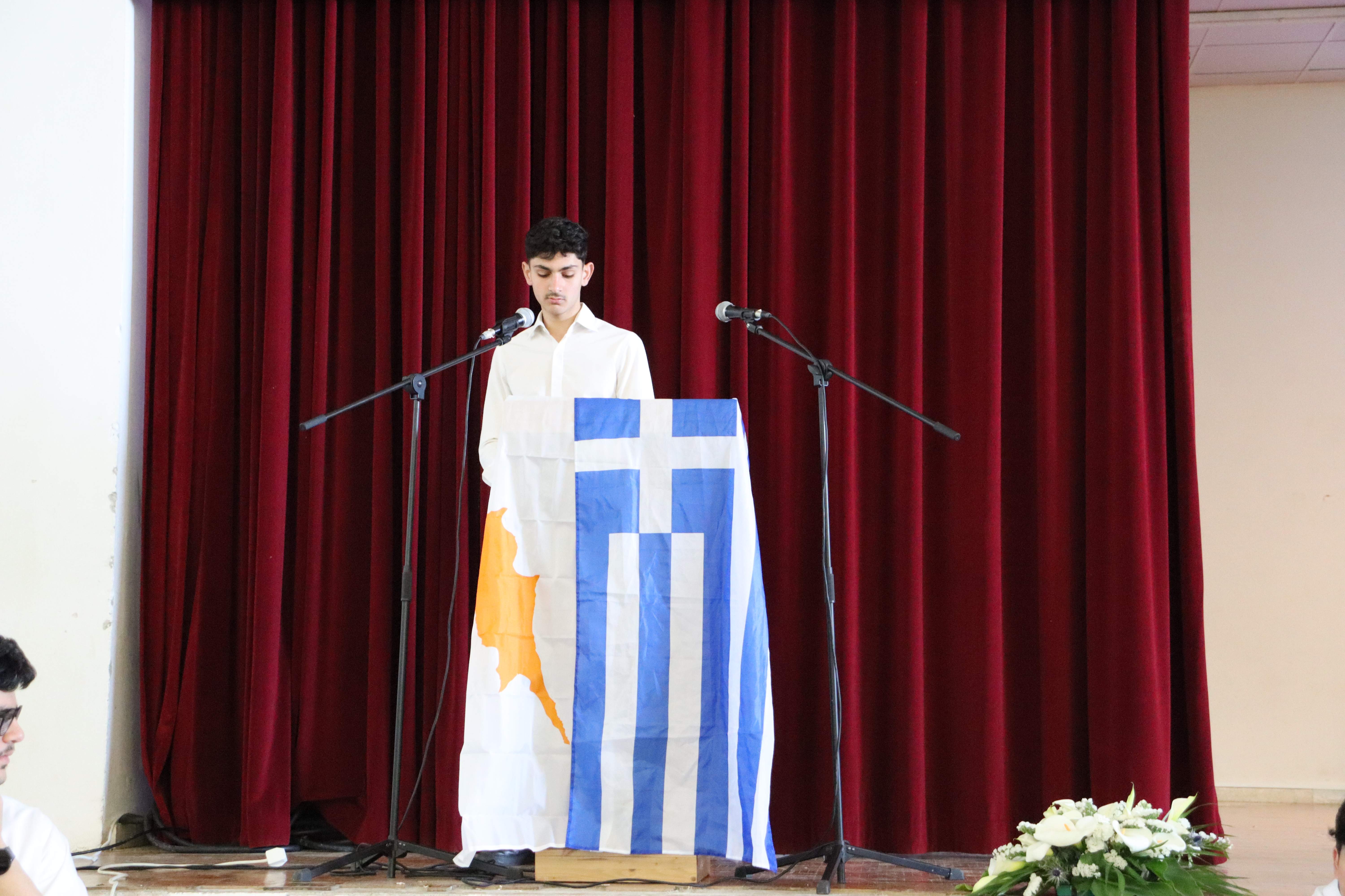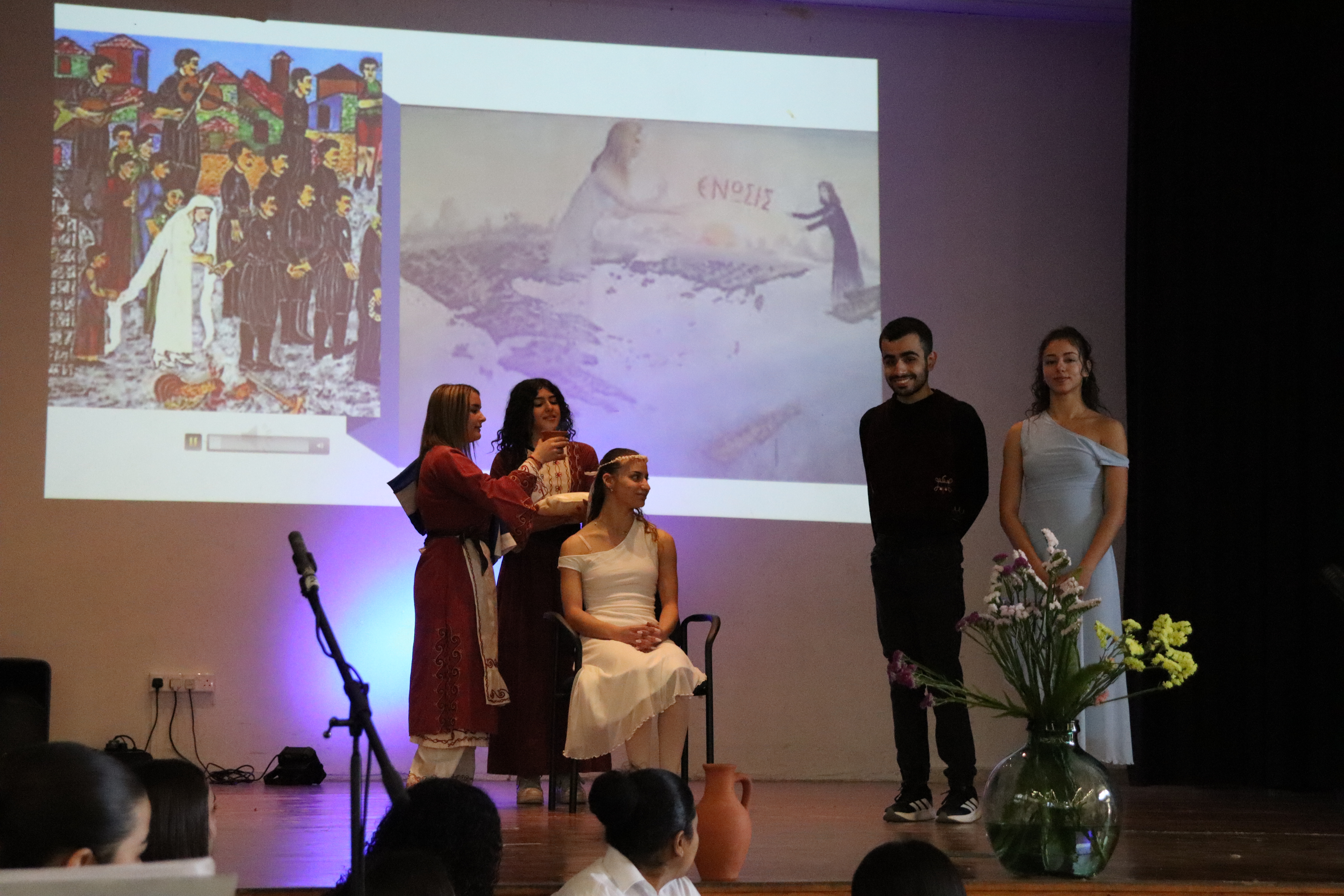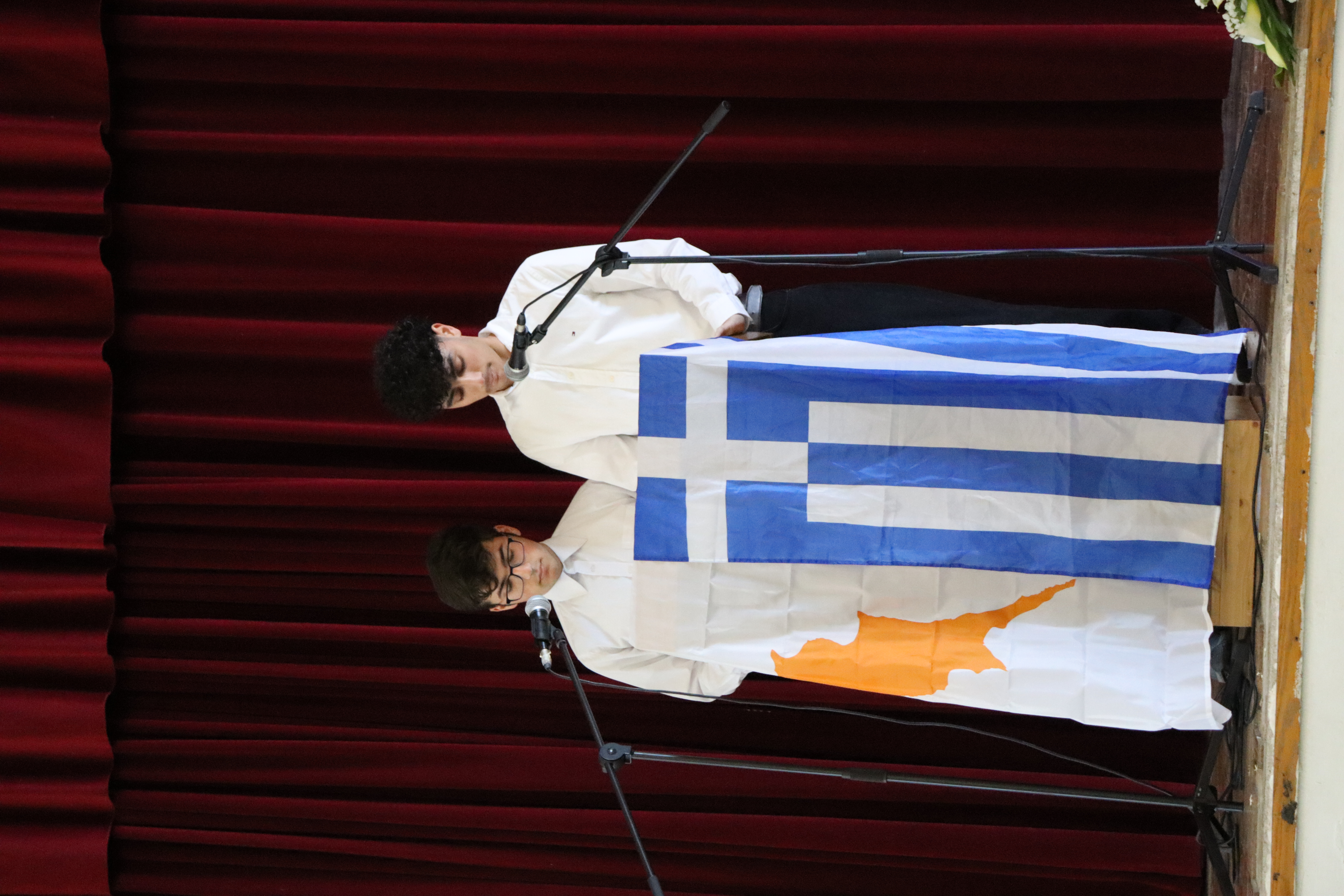Σήμερα, Τρίτη 31 Μαρτίου, το σχολείο μας τίμησε τους ήρωες του αγώνα 1955–1959 με μια επετειακή εκδήλωση που περιλάμβανε τραγούδια, χορευτικά και θεατρικά δρώμενα, αποδίδοντας φόρο τιμής στις θυσίες των αγωνιστών.