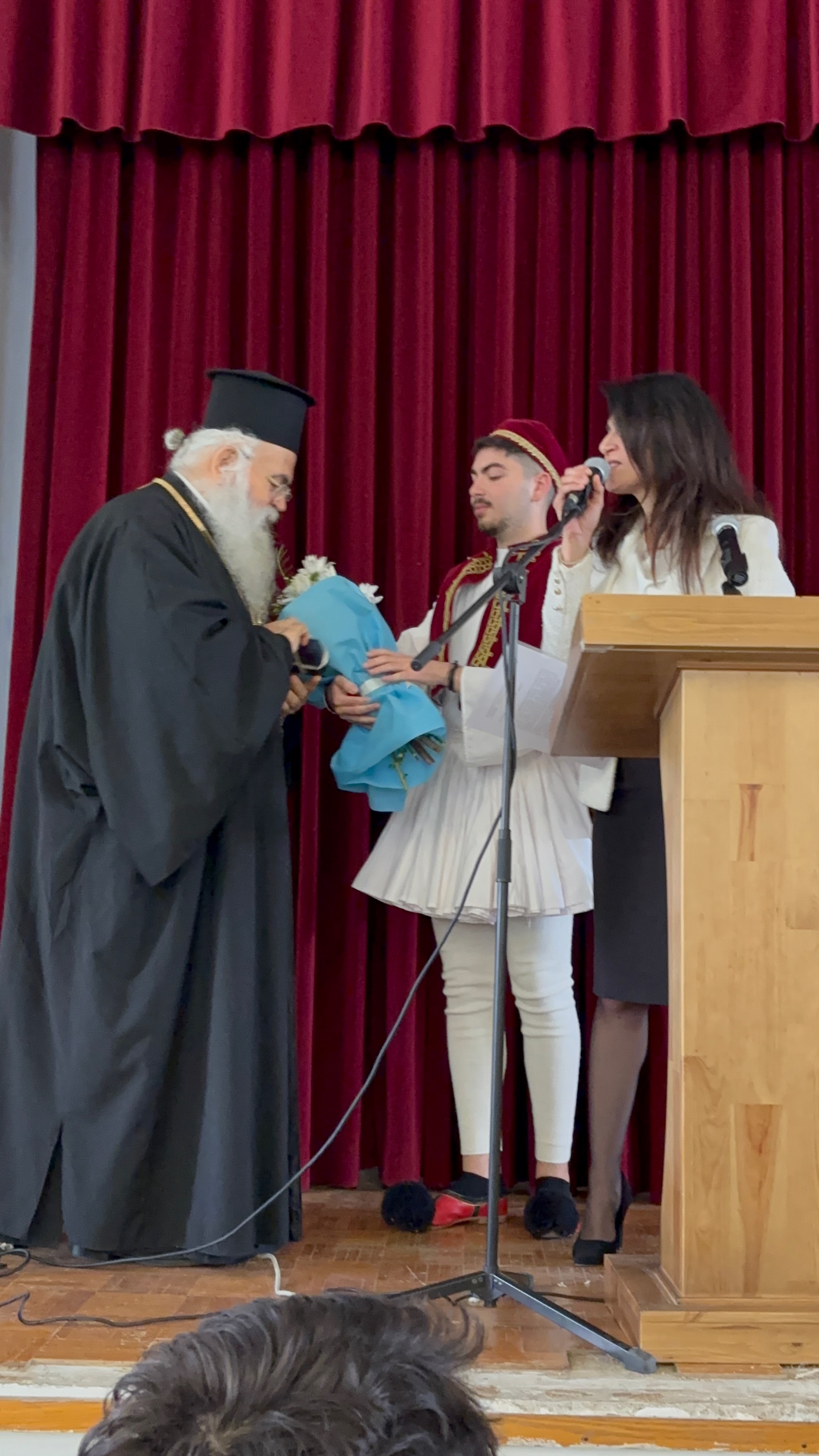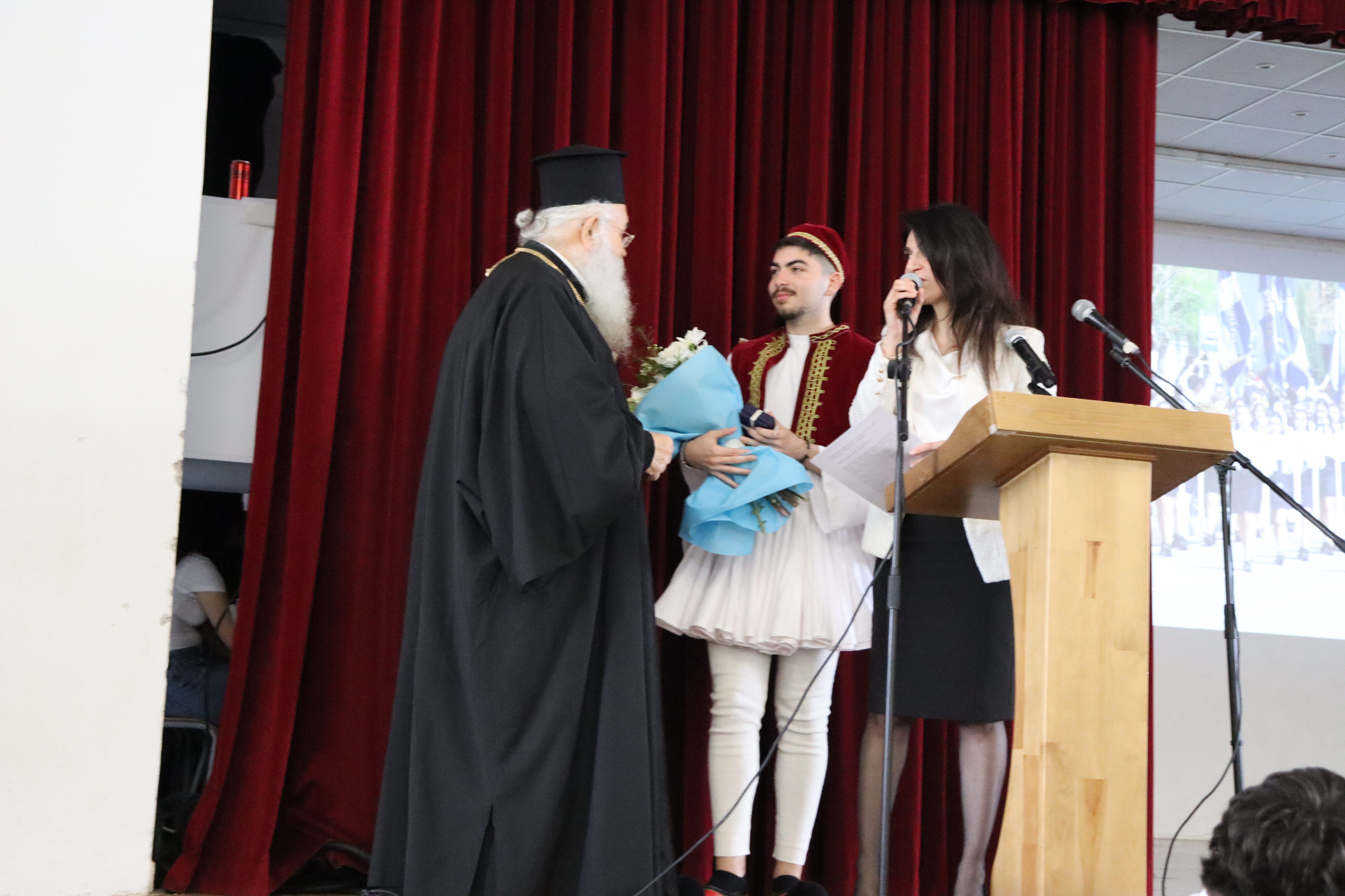 Ο Μακαριώτατος παρακολούθησε την όμορφη εκδήλωση που ετοίμασαν με επιμέλεια οι εκπαιδευτικοί και οι μαθητές/μαθήτριες του σχολείου μας και, στο τέλος, απηύθυνε θερμό χαιρετισμό προς τη σχολική κοινότητα.